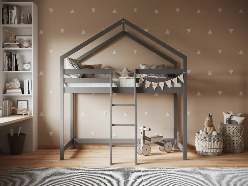 The bed is built to last, made from high-quality pine wood, with a robust frame that can withstand childhood’s daily wear and tear. The Apollo is made of a clean grey finish which elevate the bed’s whimsical feel, creating a magical and playful hideaway for your child to enjoy. The bed’s raised sleeping platform provides ample space for storage or play, with an easy-to-climb ladder ensuring that your child can access the sleeping area safely and securely.