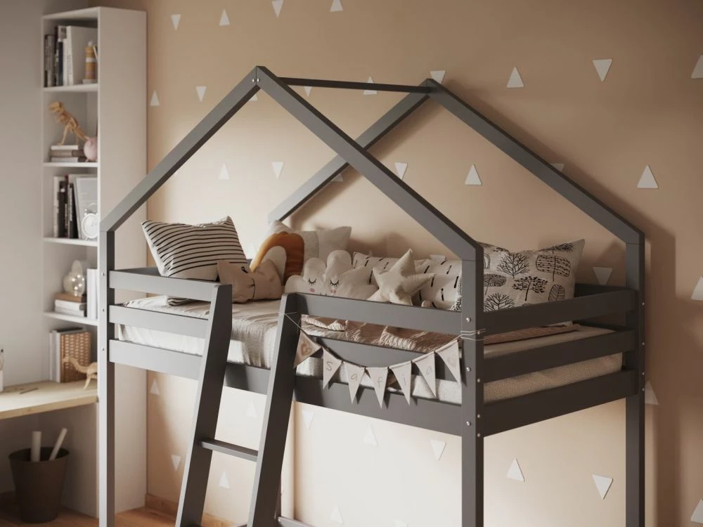 1 x Apollo Grey House Mid Sleeper Bed – 3ft UK Single