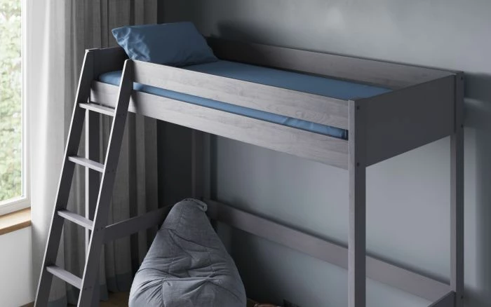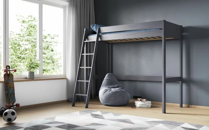 Part of the sustainable living collection is the Astral High Sleeper bed in Grey. This stunningly crafted bed frame has been designed to meet the needs of adults and children alike with the spacious underbed area. Allowing for vast storage space which makes even a small room feel much more breathable. This frame can house cube storage units or a chair if your little one just wants to kick back with their legs up.