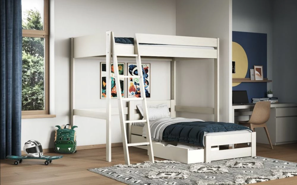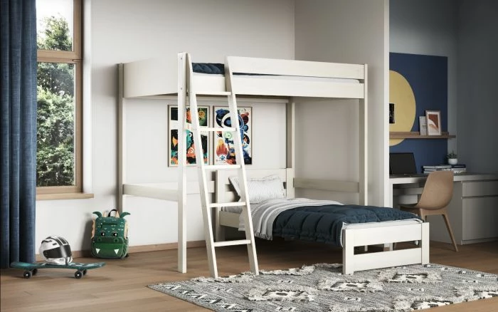 Part of the sustainable living collection is the Astral Small Double High Sleeper Bed with Single Bed in White. This stunningly crafted bed frame has been designed to meet the needs of adults and children alike with the additional 2nd bed, which was added to this configuration due to popular demand.