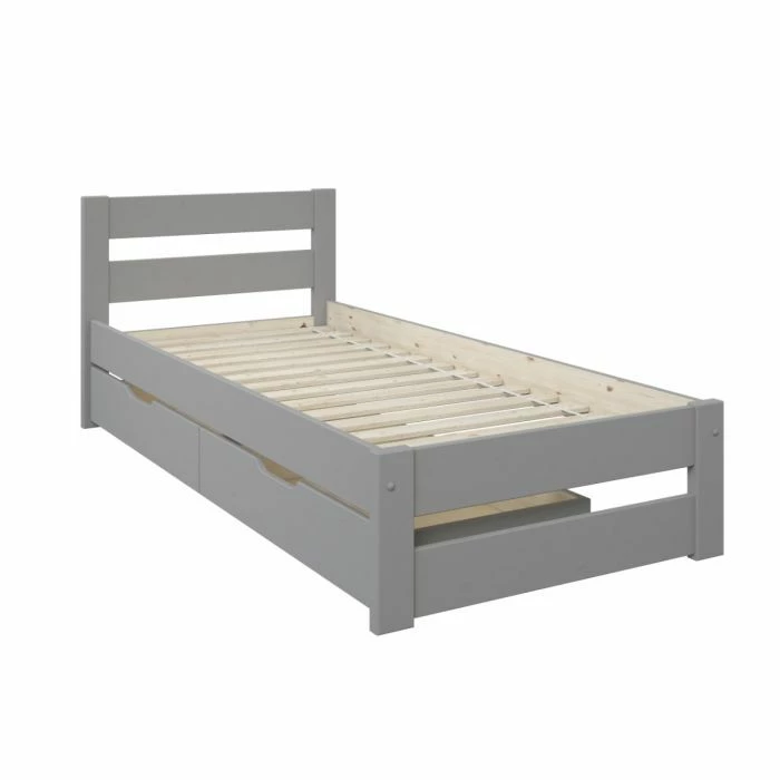 Part of the Astral range, this solid wood single bed is available with an optional set of underbed drawers. This Astral offering has enough space for 2 drawers which can be used to store various clothes/items. Expertly crafted using solid pine which provides a strong frame built for longevity, whilst offering its modernised design. The Astral is available in a single continental mattress configuration and we recommend no more than a 16cm thick mattress for this product due to safety reasons. All Astral beds are FSC certified, meaning the solid wood is sourced from sustainably managed forests. The Pine is coated with a non-toxic, eco-friendly water-based paint in both a white and grey option. Each individual piece of pine is moisture tested to ensure a strong, long-lasting build. Astral uses only ethically sourced Solid Scandinavian pine, which grows straighter, stronger and with fewer knots due to the cold atmosphere in the Nordic regions.