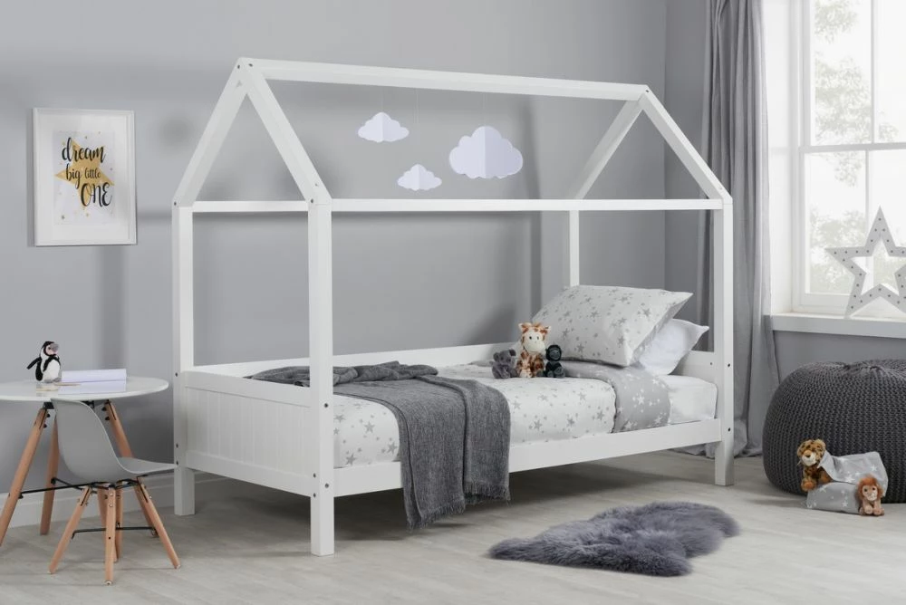 The Birlea Home Bed in White is the perfect choice for your childs bedroom. It’s time for your kid’s independence with their very own house themed bed which will impress friends and parents alike! The Birlea Home Bed in White is made of solid wood and has a solid slatted base for firmer support, allowing air to circulate beneath the mattress. The Birlea Home Bed in White is delivered flat pack for self assembly and comes with a 1 year manufacturers warranty, as standard.