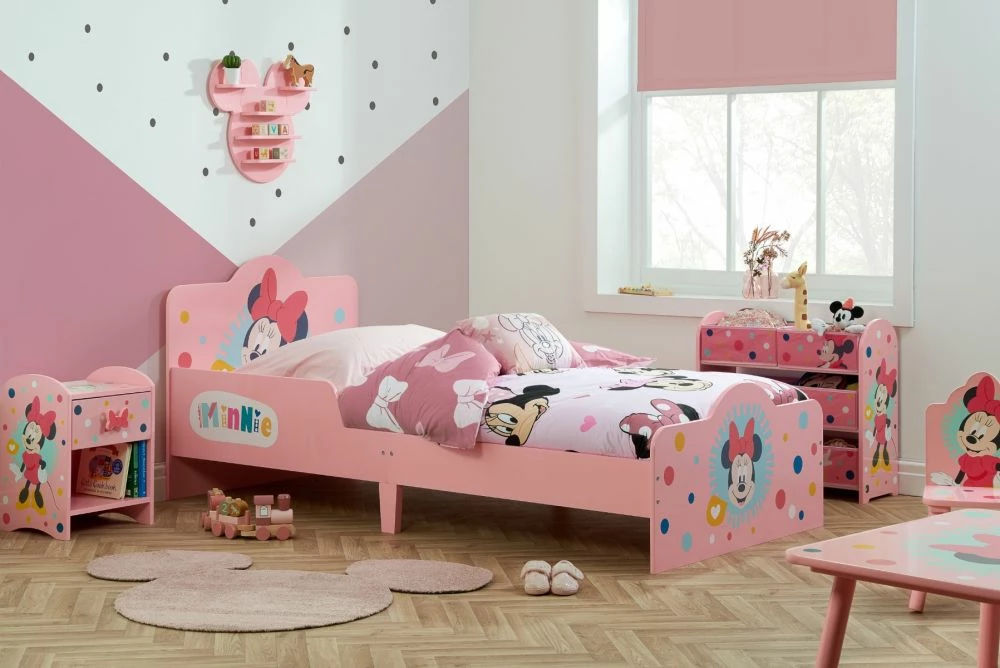 Yoo-hoo! The Disney Minnie Mouse UK Single Bed is a must have bed for all Disney Minnie Mouse fans. Featuring a detailed Minnie Mouse headboard and footboard this bed frame turns every night into a play date with your favourite polka dot character. The Minnie Mouse bed is an ideal transition from cot to bed thanks to its three-dimensional accents and colourful decals. It’s comforting environment promotes a sound sleep, helping your child to prepare for the next stage of bedtime development.