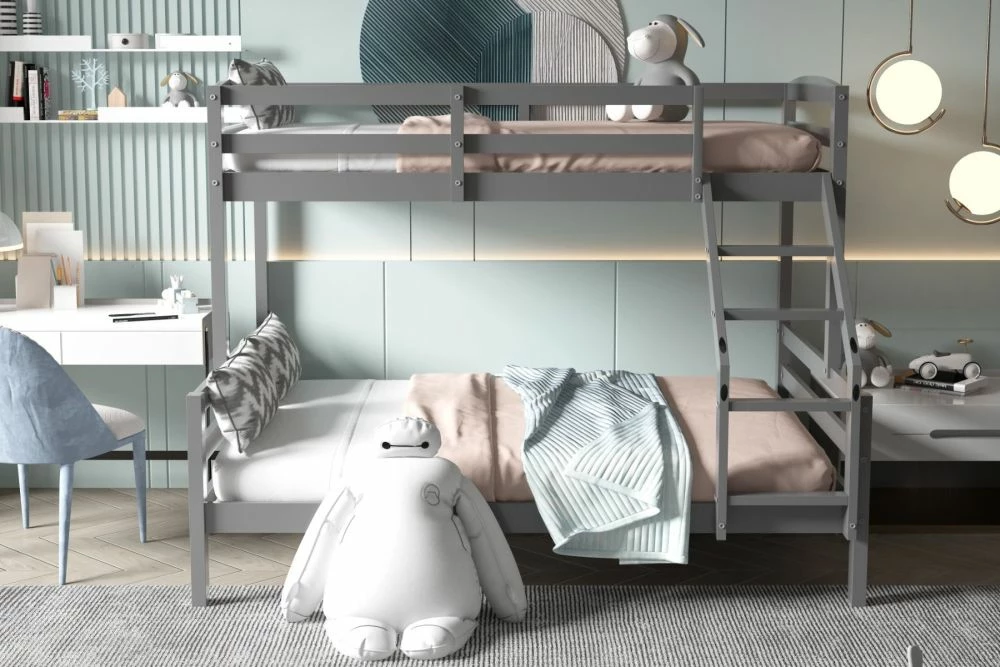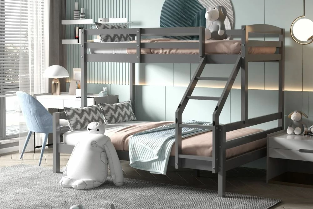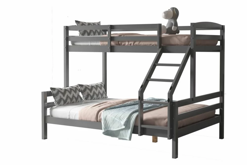 Introducing the minimalist, super classy and stylish Jackson Triple Bunk in Grey. Consisting of a Single upper bunk layer and a Double bottom bunk layer, the Jackson is both a great space saver with ample room underneath for storage and also the idle bunk for larger families while being able to accommodate three people.