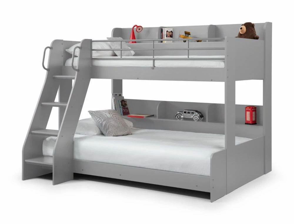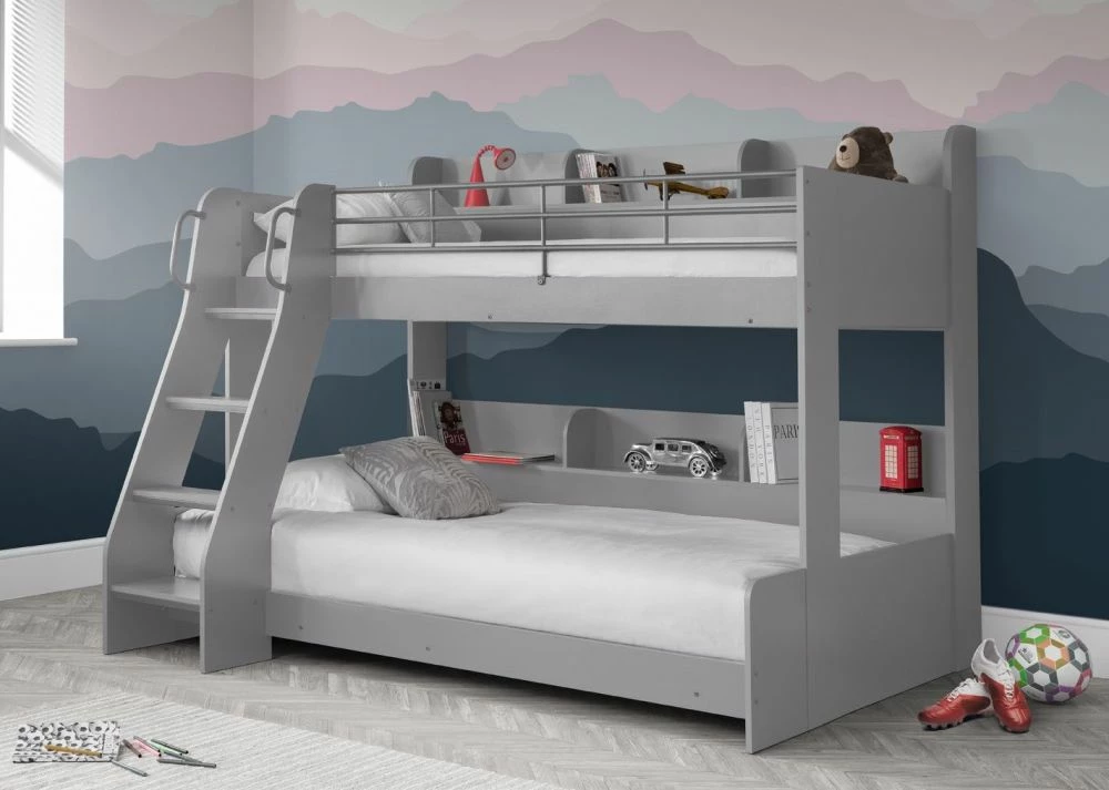 1 x Julian Bowen Domino Triple Bunk Bed in Dove Grey with Shelves