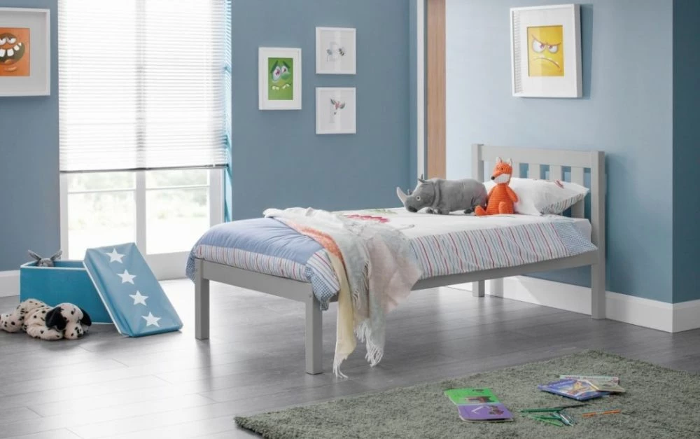 The Julian Bowen Luna Bed in Dove Grey is a fantastic childrens single low sleeper bed from the reputable manufacturer, Julian Bowen. The Luna single bed is an elegant and simple single bed, crafted from solid pine with a dove grey lacquer. The Luna single bed is perfect for a wide range of traditional and contemporary bedroom décor with its simple, yet stunning design. Offering a strong, durable construction, this bed features a solid slatted base, ensuring a comfortable night’s sleep.