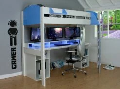 The Kids Avenue Midi Playhouse Mid Sleeper Bed in White is a beautiful house style bed which will look great in any child’s bedroom. This Mid Sleeper bed offers a place for your child to play and free their imagination whilst also providing a secure and solid structure giving you that piece of mind that your child will sleep safely. The Kids Avenue Midi Playhouse Bed is crafted from Scandinavian Pine and MDF in a White Painted Finish and comes with a slatted bed base which allows ventilation for your child’s mattress. This Playhouse bed features a playful house design and includes a chest of drawers and cube storage unit which allows your child to study and store away books and toys. The chest of drawers and storage unit are both also free standing items meaning you can position elsewhere within your child’s bedroom and use the underneath space as a den or to store toys.