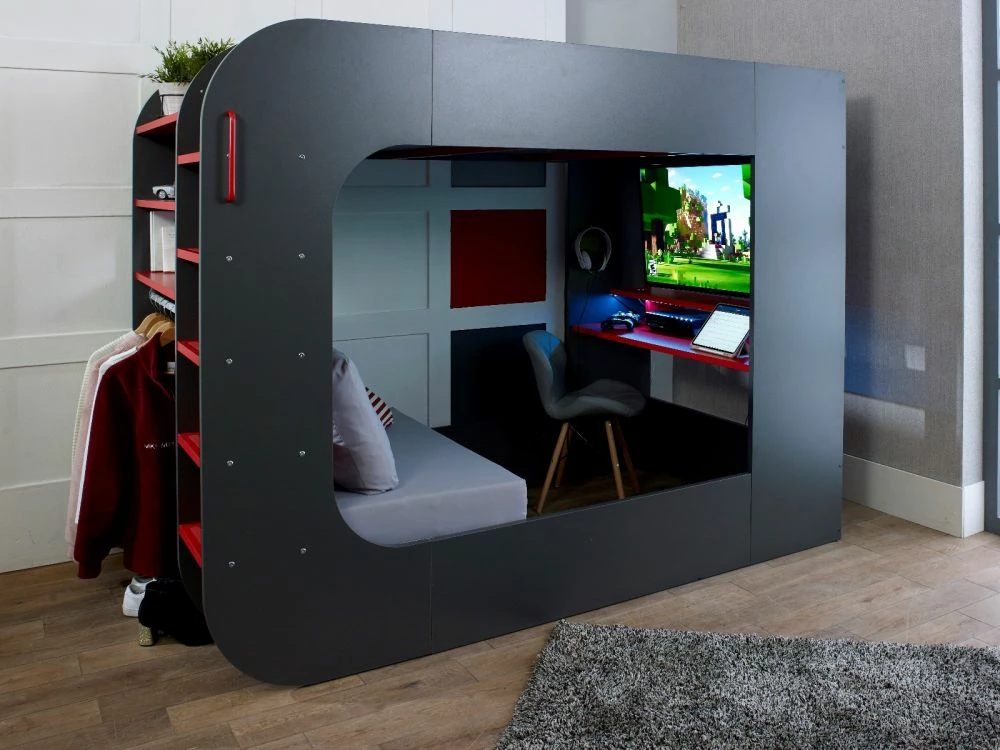 1 x Kids Avenue Trasman POD 2 Gaming Highsleeper Bed in Dark Grey