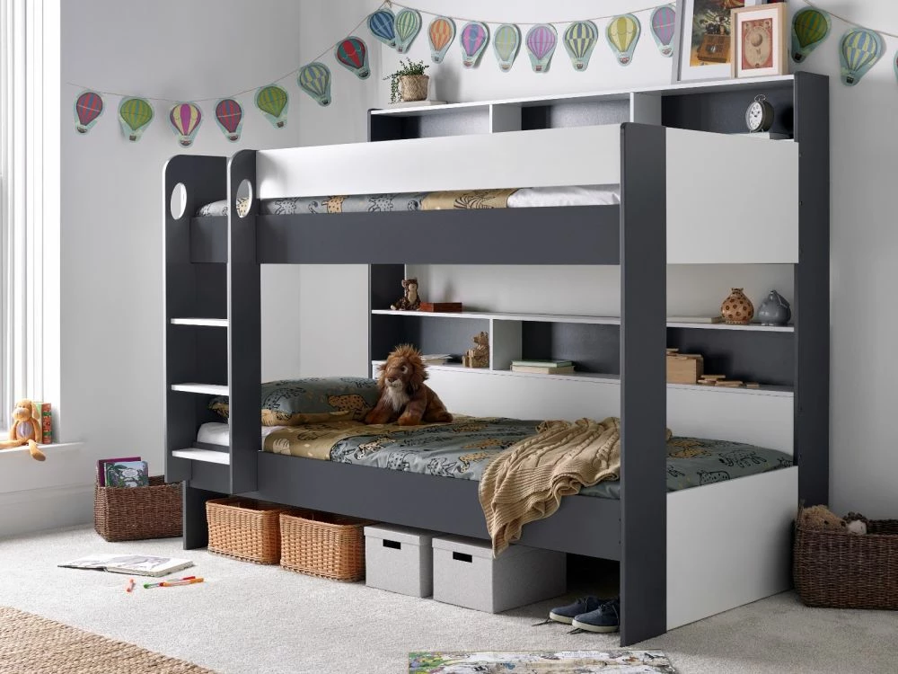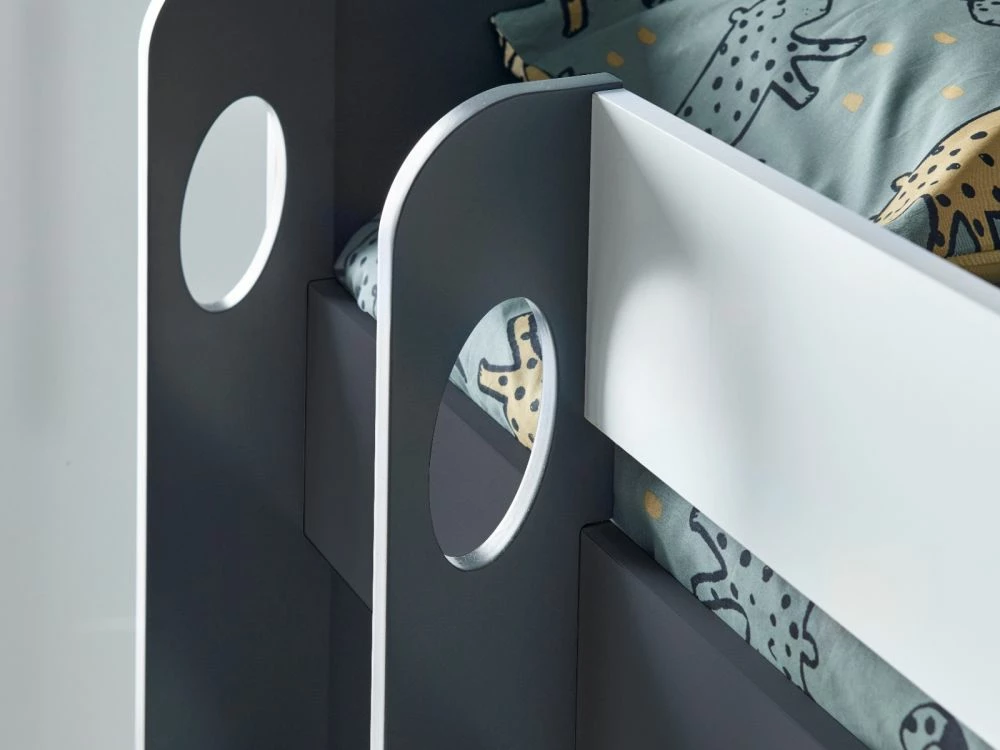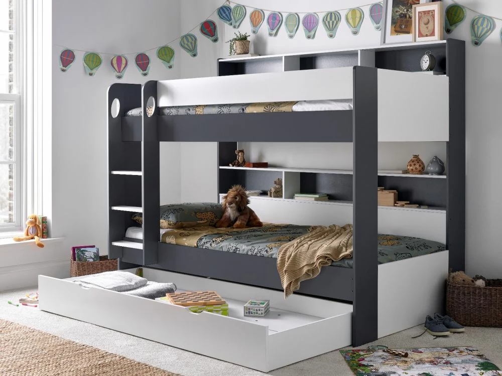 Both the top and bottom bunk on the Oliver White & Grey Bunk Bed have shelves that your child can use to store away books or display figurines. Each shelf has dividers, allowing your child to make themed sections or add organisation. Alongside this, the top of the shelves have a raised lip that helps to prevent smaller items from falling down the back! Another benefit to the Oliver Bunk Bed is the optional pull-out drawer that allows them put away clothes, extra bedding or even schoolwork!