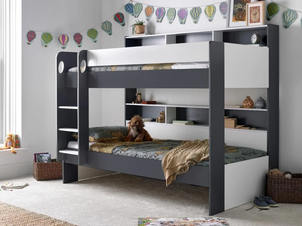 Introducing the fabulous Oliver Grey & White Wooden Storage Bunk Bed which is a new addition to our bunk bed range and offers a great space saving solution along with an abundance of storage space. Whether your child loves a vibrant and colourful bedroom or prefers something a little more neutral, the white and grey colour of the Oliver Storage Bunk Bed will complement any interior. Not only that, but it has a contemporary appearance and has been designed to be a versatile bed. The lower bunk is positioned close to the ground, making it safer for your child but also helping to create a more open feel to your child’s bedroom!