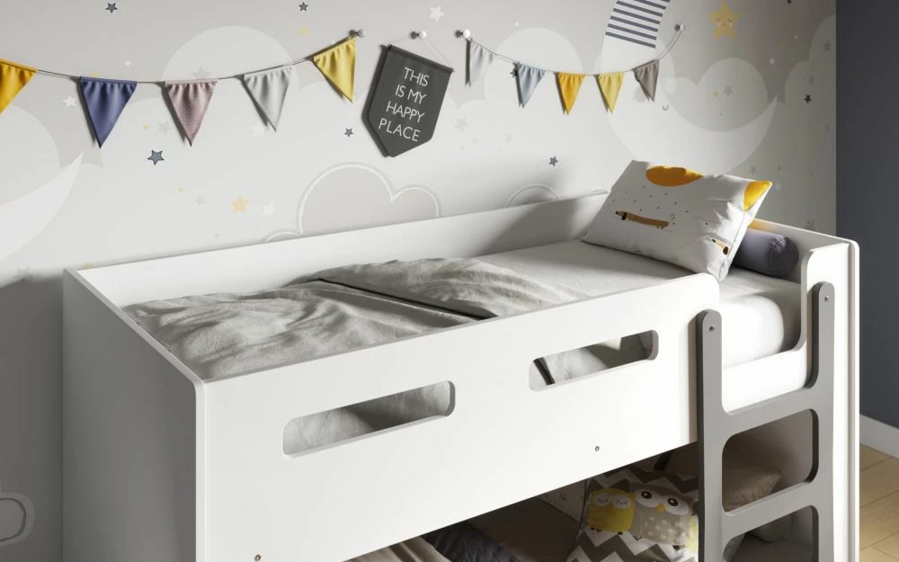 Introducing the Stellar Pod Bunk Bed in White which is a new addition to our Children’s Bed Shop range. This stunning futuristic bed frame has been created with the inspiration of space travel and outer space experiences for adults and children alike. The Stellar POD is the perfect bunk for your little astronauts with a clean solid white look which is sure to make it the centrepiece of any bedroom that it lands in. This frame also includes a child-friendly ladder allowing for easy manoeuvring in and out of bed, and also a solid sideboard to ensure they have a snug fit. The low-to-the-ground design embodies the Montessori method which encourages children to become more independent without compromising their safety. We also offer a select range of mattresses when you can save up to 20% off when purchased with this bunk bed. Please see the dropdown menu provided.