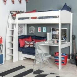 The Stompa Uno S 21 High Sleeper Bed with Desk and Blue Sofa bed is the bees knees when it comes to High Sleepers, from sleeping to Study and even relaxing. This High Sleeper with its unique ladder looks great but also has safety in mind, deep steps and a wider tread. The Stompa Uno S 21 High Sleeper includes a fixed desk perfect for studying. The cosy sofa bed is great for sleepovers and will be the envy of all your childs friends.