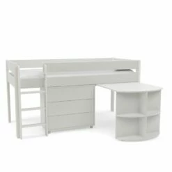 The Stompa Uno White High Sleeper with Desk and Grey Sofa Bed is another cleverly-designed High Sleeper within the Stompa Uno range. This High Sleeper features a modern and sleek look and will suit any childs bedroom. This Stompa Uno White High Sleeper features a fixed desk and a pull out sofa bed which is perfect for sleepovers for friends or siblings. This High Sleeper is made from premium solid pine ensuring a robust High Sleeper that will last for many years. Why not combine one of our recommended mattresses from the dropdown menu provided and save up to 20% when purchased with this bedframe. The Stompa Uno White High Sleeper is delviered flat packed for self assembly, or Stompa offer an assembly service of their products, saving time and effort to get your new children’s bed ready for use. This is also available from the dropdown menu provided.