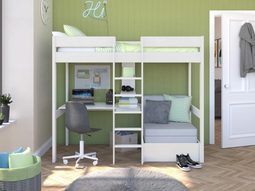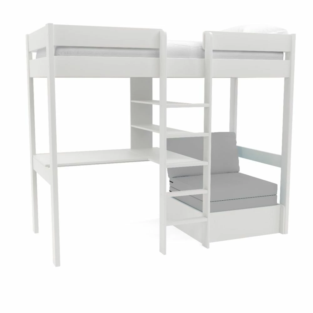 1 x Stompa Uno White Highsleeper Bed with Desk & Grey Sofa Bed