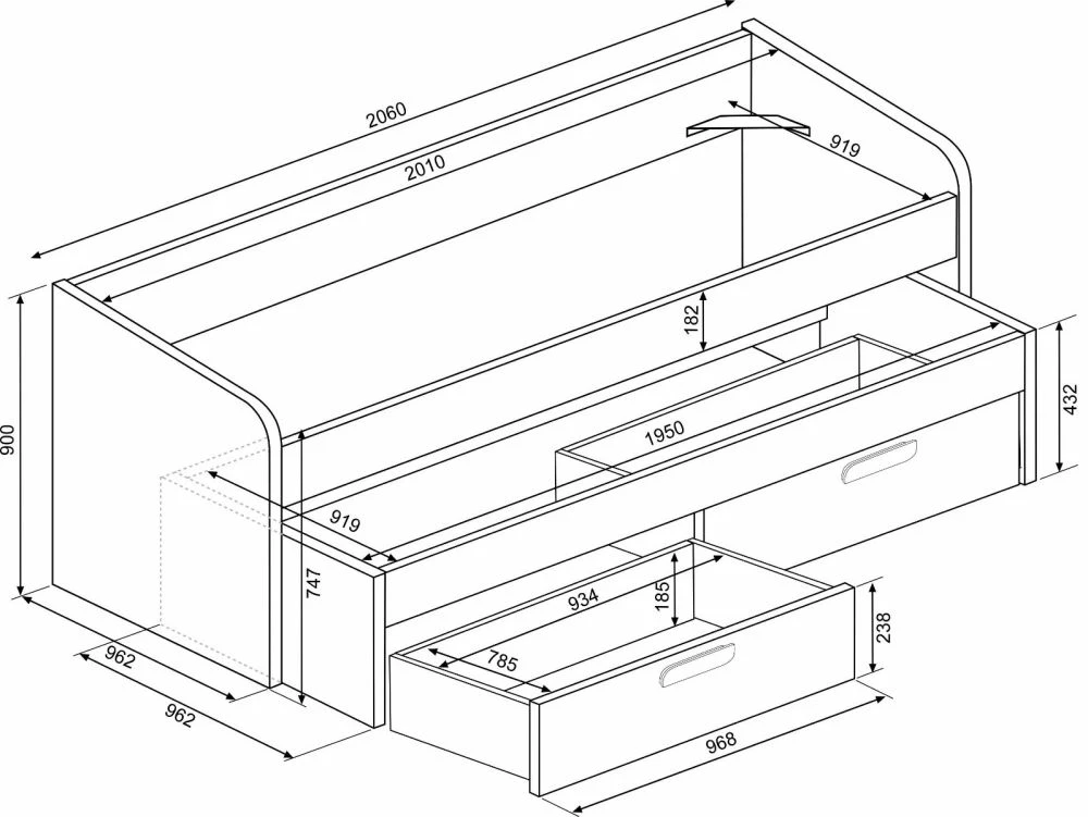 | * Dimensions: H: 90cm x L: 206cm x W: 96.2cm |