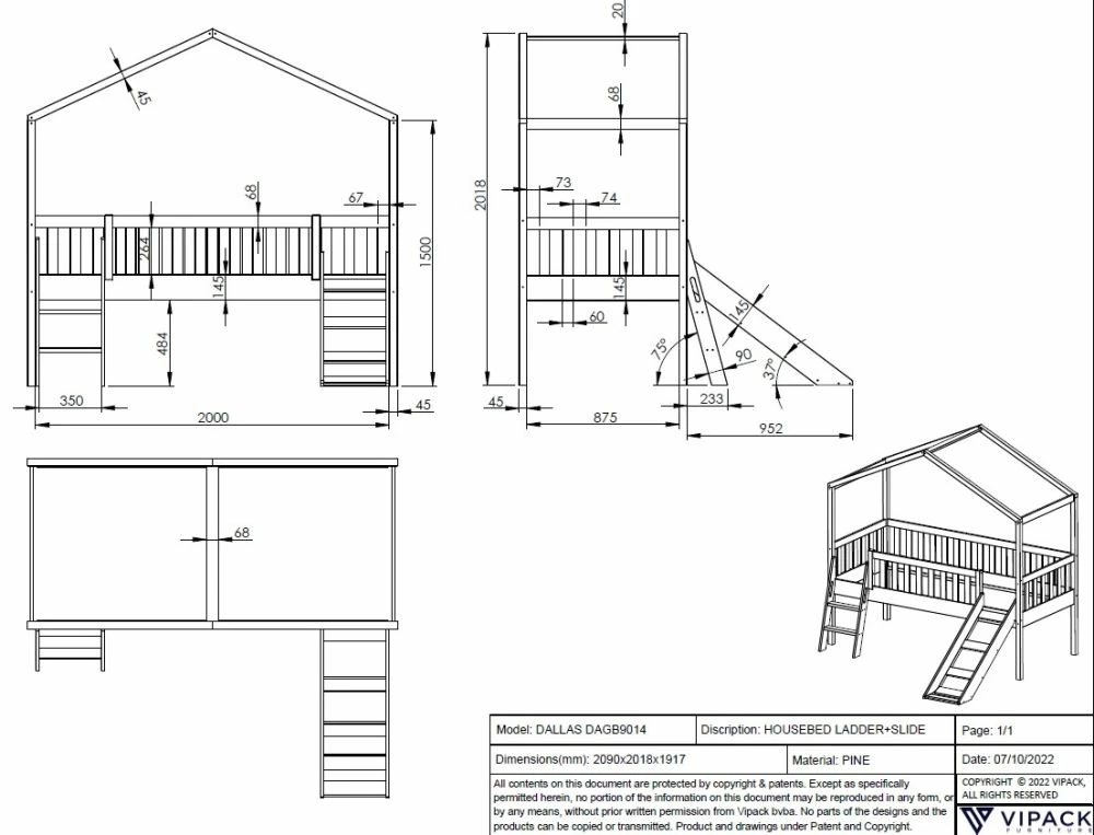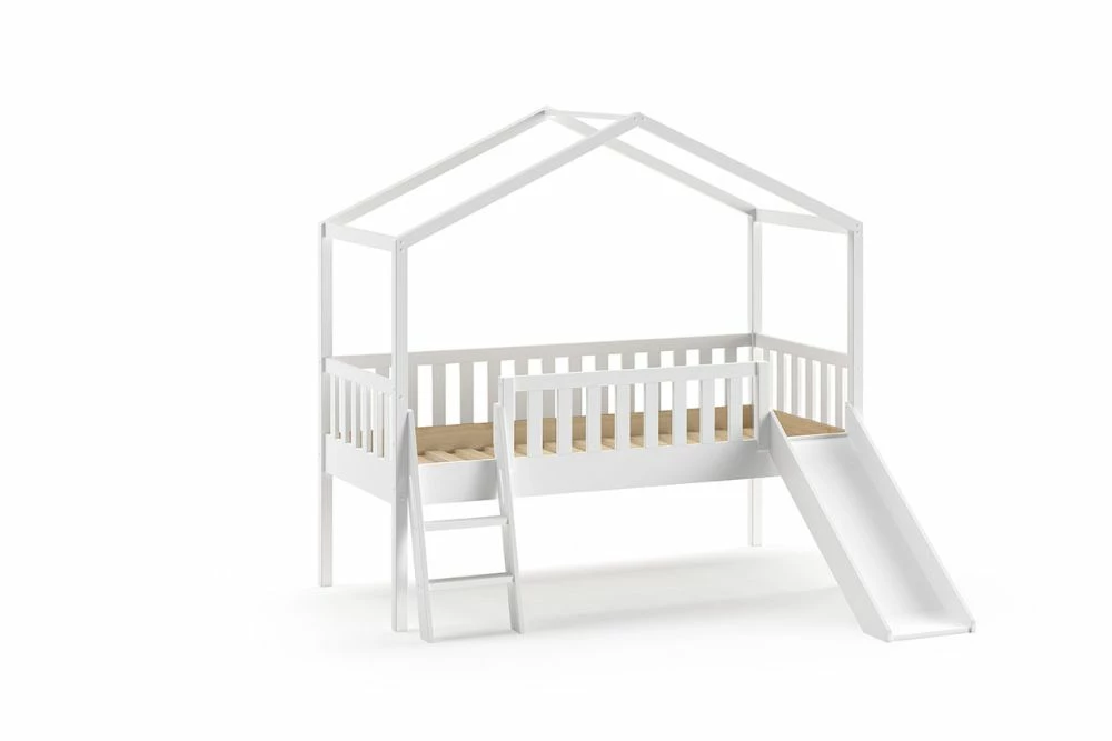 Introducing the Dallas Kids House Bed with Slide which is supplied by our reputable supplier, Vipack. Your little one with have so much fun climbing and sliding on the Vipack Dallas Kids House Bed with Slide and Ladder. You won’t be able to get them to bed quick enough knowing they can cosy up and hideout then slide away into a new day of play. You may be lucky and they may just tire themselves out climbing and sliding all weekend. The Vipack Dallas Kids House Bed with Slide features plenty of storage space underneath the bed to store games, cuddly toys, jigsaws and so much more! This bed is made from solid scandinavian pine in a white lacquered finish and is delivered flat pack with easy to follow assembly instructions.