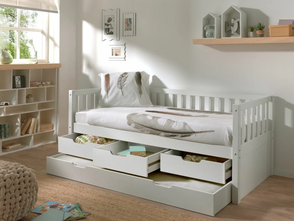 The Fritz Captains Bed in White is part of a new Fritz collection from our reputable supplier, Vipack. The Fritz Captains Bed is made of solid pine and features a slatted design to the back and sides. This minimalistic yet trendy design makes it perfect for every interior and features 3 spacious pull out drawers which allow room for clothes or bedding. The Fritz Captain Bed also features an optional trundle drawer which can be used for storage or an additional sleeping area. The Fritz Captains Bed in White is delivered flat pack for self assembly with a 2 year manufacturers warranty as standard, for that extra piece of mind.