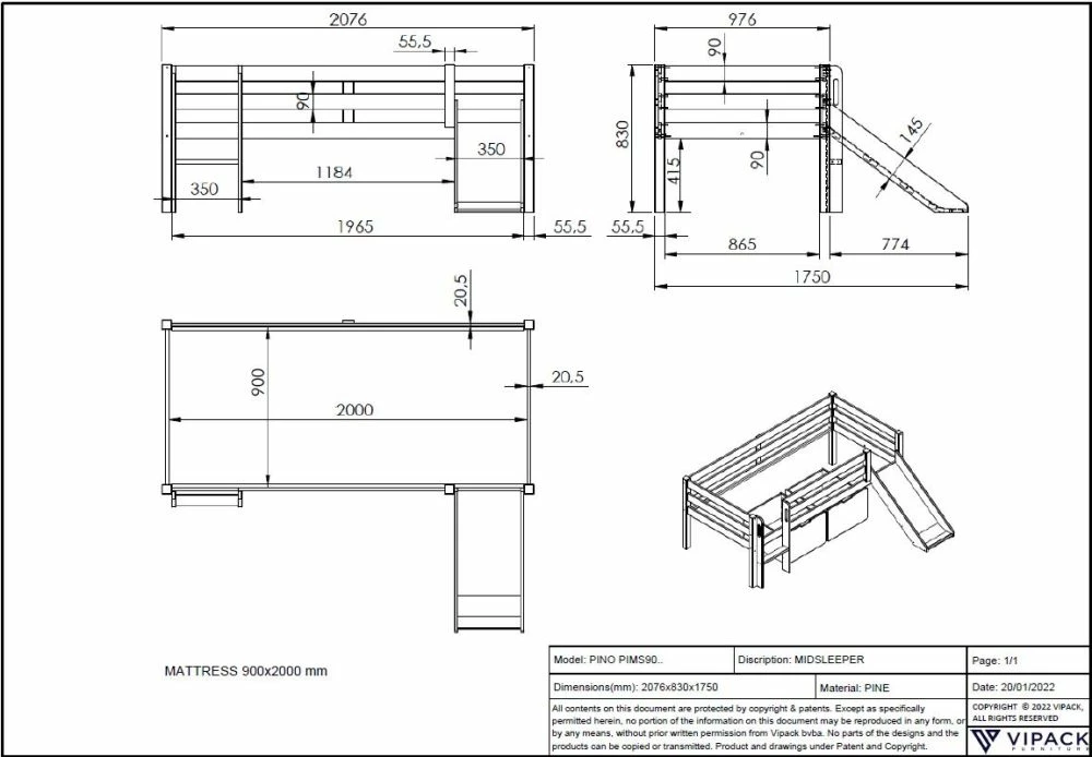 Choose the Vipack Pino Low Mid Sleeper Bed in Grey with Slide and you’ll be hearing alot of excitement coming from your little one’s room! That’ll be because of the slide! A bed made for playtime – kids can stay active in the comfort of their own room and slide into each day! Set lower to the ground with surrounding slatted guard rails for added reassurance, but with enough underbed space for toys – add the optional storage boxes if you want to keep everything contained and hidden away. Made from Scandinavian pine, the Vipack Pino Low Mid Sleeper Bed is delivered flat pack for self assembly with easy to follow assembly instructions and comes with a 2 year manufacturers warranty for that extra piece of mind!