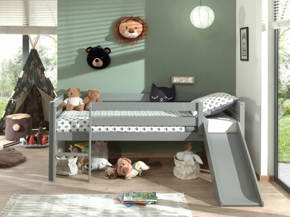 1 x Vipack Pino Low Mid Sleeper Bed in Grey with Slide